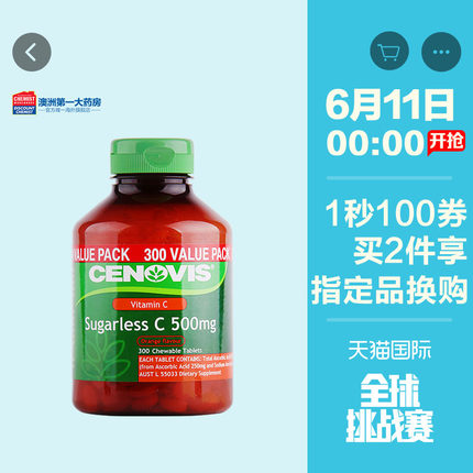 【澳洲进口Cenovis 成人VC咀嚼片300粒 劵后59元包邮】