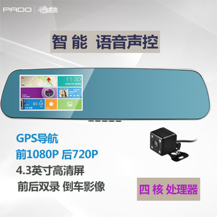 A60行车记录仪4.3寸触摸屏 安卓系统 四核配置 内置内存8G 已安装高德导航 固定电子狗 ,同时可选择双摄像头 前后录制和倒车影像。 此款 A60 4.3寸后视镜行车记录仪,应用全志A33方案,四核处理器,搭载Mali 400 MP2图形处理单元,支持1080P高清视频处理和播放;摄像头F2.0光圈,画面视角可达145°;配有夜视补光功能,保证夜间使用清晰度;8G容量,录像时长可达120分钟。安卓4.4系统,可以语音操控,并在WiFi联网情况下,实现导航、声控点歌等功能。内置G-Sensor重力感应芯片,突发状况下可自动锁定当前录像,避免覆盖,有助事故调查取证。此外,还配有智能测速预警系统,提供实时预警服务。