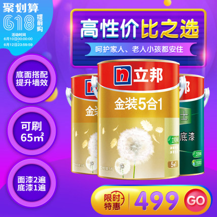 超低VOC,性价比之选,持平双11好价。天猫立邦漆官方旗舰店,目前这款套装正在参加聚划算,下单499元入手,持平之前推荐的双11价格,历史低价。面刷漆两遍+底漆刷一遍的话,预计可用面积在65㎡左右,相比某东旗舰店满减后600多元的价格很有优势了,近期有装修计划的朋友可以看看。