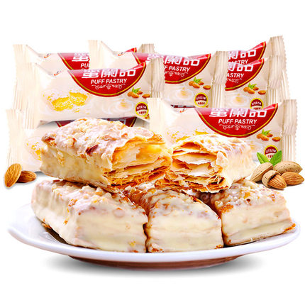 回头客 千层蛋糕 500g ,层层烘烤,层次分明,色泽金黄,片片浓香,奶香浓郁,一次性满足你的味蕾,奶香浓郁,流淌在齿间的清新香味。天猫回头客食品旗舰店报价23.9元,使用5元券,实付18.9元包邮