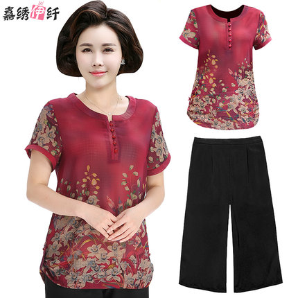 【49元包邮(99-50)嘉绣伊纤 中长款妈妈装夏季套装 多色可选】