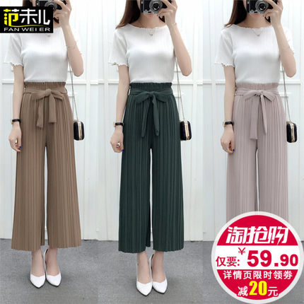 【范未儿 2017复古蝴蝶结系带阔腿裤 劵后49.9元包邮】