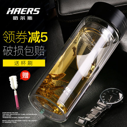 【9.9元包邮(24.9-15)HAERS 哈尔斯 双层防烫玻璃杯300ml+杯刷】