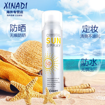 韩国 RECIPE 水晶防晒喷雾 150ml SPF50 PA+++ ,360度自由喷湿的设计,脸部及全身均可无死角方便使用。轻盈的使用感、不粘腻、不泛油光,不沾染衣物及头发,不用担心起堆及浮白现象,完全透明的防晒喷雾,彻底防御紫外线、不受汗水及皮脂影响,防晒之余也具备补水、保湿及降温效果,于化妆后使用,就是一款神奇的定妆水。