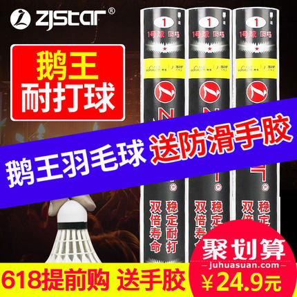 【19.9元包邮(24.9-5)中极星 耐打王羽毛球12只装】