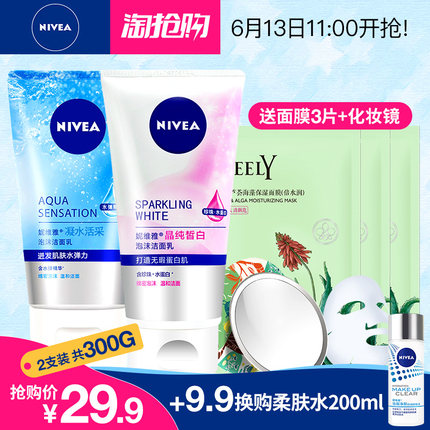 【妮维雅 保湿深层清洁洗面奶 2只装共300g 券后【24.9元】包邮 送面膜】