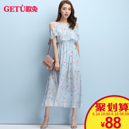 歌兔 女士 碎花 雪纺连衣裙,高品质垂顺精致雪纺面料,柔软透气飘逸有质感,露肩袖设计,遮挡赘肉,优雅而不小清新,商家报价88元,使用30元券,实付58元包邮。