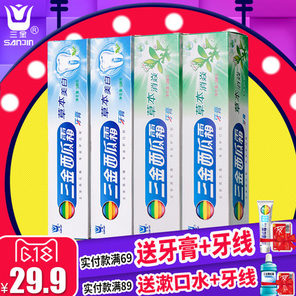 【19.99元包邮(需用券)三金西瓜霜 草本美白消炎牙膏100g*4支】