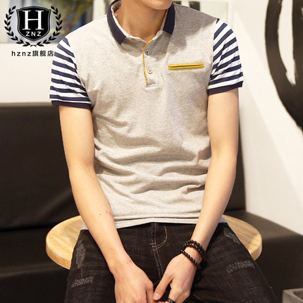 hznz 男士修身POLO衫,精致冰丝棉,透心凉,心飞扬,超强柔软,不褪色,不起球,不缩水,天然抗过敏,撞色条纹袖!