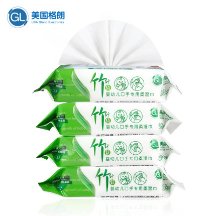 格朗 竹纤维湿纸巾 100抽/4包 9.9元包邮