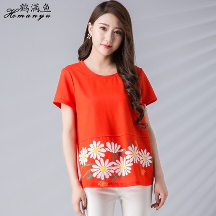 鹤满鱼 妈妈装 短袖上衣,3D立体剪裁,视觉上拉长身形,简约时尚印花T恤,舒适透气,让妈妈过个舒爽的夏天。