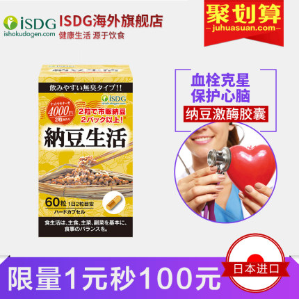 【日本进口 ISDG纳豆激酶纳豆菌胶囊60粒/瓶 劵后88元包邮】