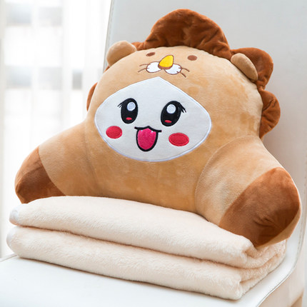 这款是办公室一族的福音哦,工作的时候可以用来做腰靠,午休或者在空调房,可以展开变成毯子哦,一物两用非常方便。材质很柔软舒服,腰靠尺寸为50*30cm,毯子尺寸为80*110cm,多款星座为造型的卡通形象可供选择哦。