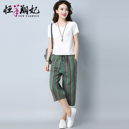 【58元包邮(78-20)恒羊翔妃 女款亚麻套装阔腿裤+T恤 多款可选】