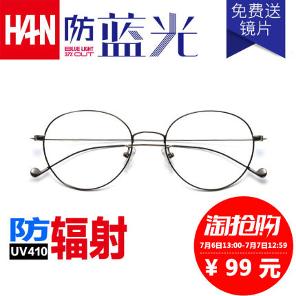 【汉代 HD4840 复古圆框眼镜架+1.56非球面防蓝光镜片¥69包邮(¥99-30)】