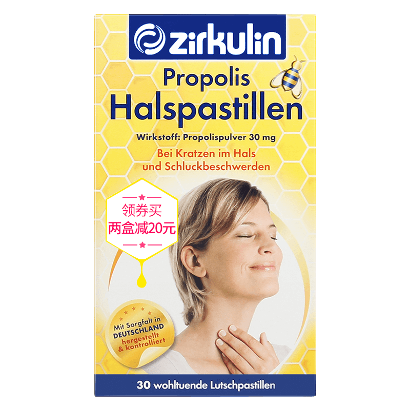 【zirkulin海外旗舰店!德国进口Zirkulin 无糖蜂胶润喉片30片 劵后34元包邮】