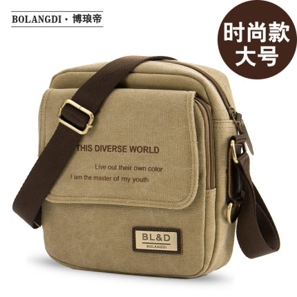 博琅帝 男士 休闲帆布单肩包,耐磨防爆裂,简约时尚,通用百搭,时尚商务休闲之选~ 天猫有商家报价27(经典款小号),使用10元券,实付17元包。