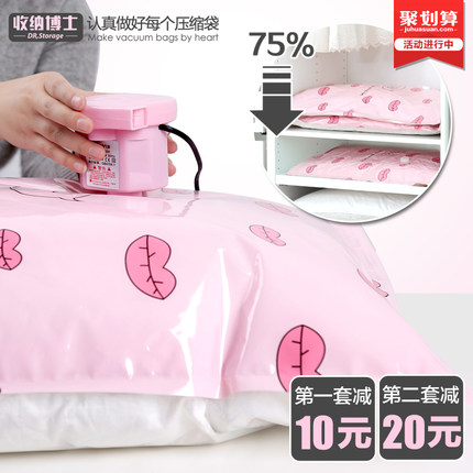 收纳博士 真空压缩袋 10个装,环保无异味,双重防漏气,真空压缩,收纳衣服、棉被节省空间,防潮防霉,隔绝空气,让衣物安全健康收纳,居家首选。