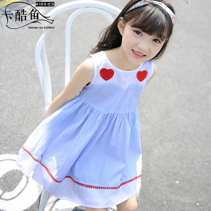 卡酷鱼 纯棉 女童 小清新背心裙, 2017夏装新款,甜美小清新,爱心贴布装饰,可爱甜美,小公主一定喜欢,宝妈必备!