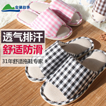 金湖故事 男女亚麻拖鞋,鞋面采用格棉布,鞋垫为亚麻材质,相比一般塑胶拖鞋,透气性更好,吸湿排汗,更适宜夏季,天猫专营店售价22.9元,领取15元券,实付7.9元包邮。