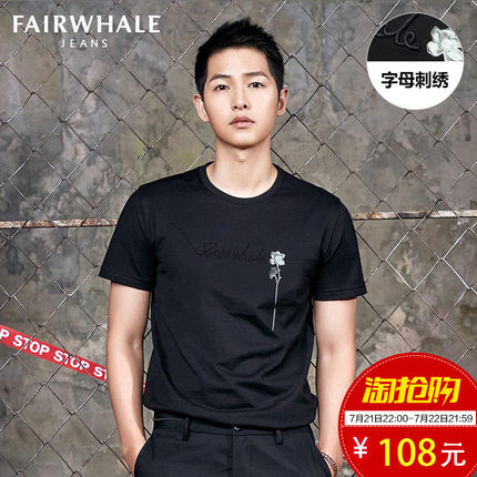 68元包邮(108-40)马克华菲 男士纯棉印花短袖T恤