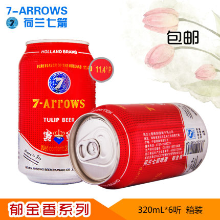 【荷兰七箭啤酒郁金香320ml*6听 卷后16.9包邮】
