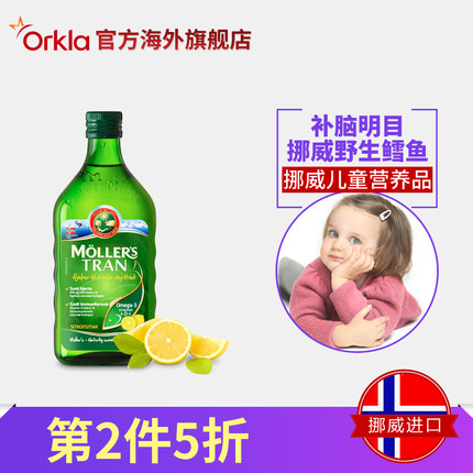 【Mollers 沐乐思 挪威进口 深海鳕鱼肝油250ml*2瓶 柠檬味新低¥148.5包邮包税(双重优惠)】
