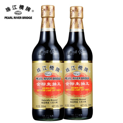 珠江桥牌 金标生抽王500mlx2瓶,酿造酱油,经典热销,畅销港澳,豉香浓郁,领15元券后,14.9包邮