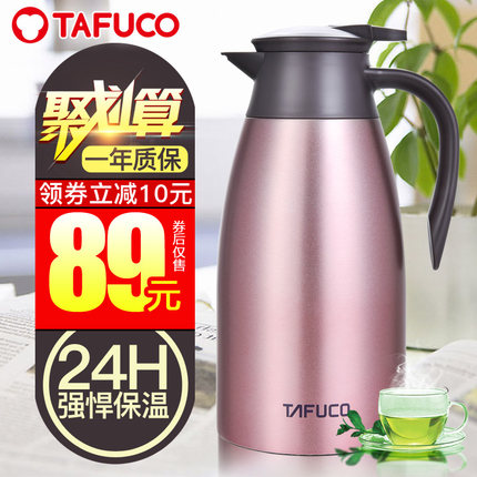 【日本 TAFUCO 泰福高 304不锈钢保温壶2L 多色¥69包邮(¥99-30)】