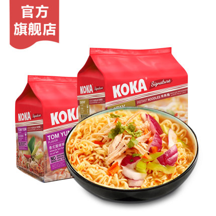 【新加坡KOKA】鸡汤/酸辣两种口味方便面10包,旗舰店券后【24.9元】包邮,新加坡美味,10袋装,一份有嚼劲的方便面,要吃就得吃的宽心.