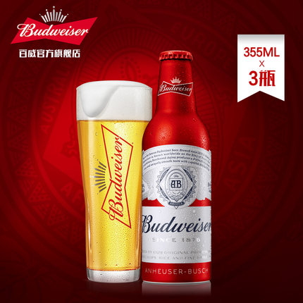 【临期特价,Budweiser 百威 经典铝瓶啤酒355ml*3瓶¥14.9包邮(¥19.9-5)】
