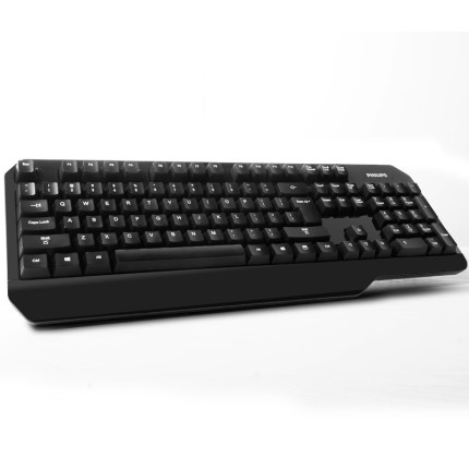 飞利浦 SOK6202 USB有线键盘,采用全尺寸键盘,贴合手型,美感十足。采用钢琴烤漆工艺,简洁大方,加宽手托,强化手感悬浮键帽机械手感,高弹力,舒适手感,轻触舒适,有节奏感。
