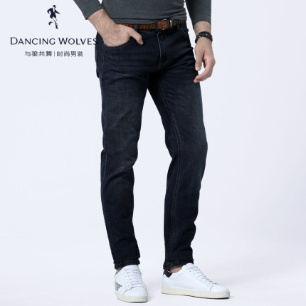 【与狼共舞 男士修身中腰直筒牛仔裤 99元包邮(149-50劵)】