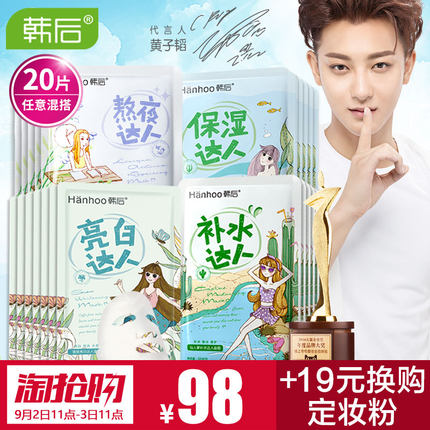 韩后 补水达人面膜组合装20片,国货大牌美妆,美白淡斑,补水保湿,控油洁肤,收缩毛孔,韩后,你有机会更美~淘抢购【98元】券后【58元】包邮