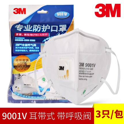 【5.9元包邮(20.9-15)3M 带阀防颗粒物口罩 9001V 耳戴式】