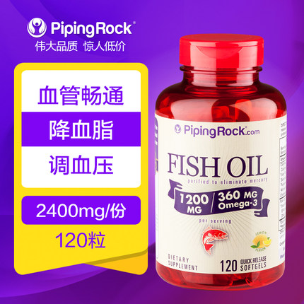 【美国进口 PipingRock Omega3 深海鱼油软胶囊1200mg*120粒 券后39元包邮(京东79元)】