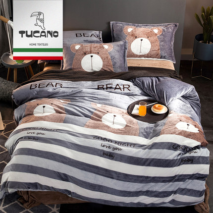 【99元包邮(139-40)七好啄木鸟 法兰绒四件套1.5/1.8米同价】
