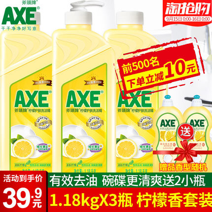 【斧头牌 柠檬护肤 洗洁精 1.18kg*3瓶 34.9元包邮】
