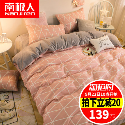 A版全棉,B版水晶绒,1.2m/1.5m/1.8m床单法兰绒被套,清新韩式风,时尚四件套,舒适健康,亲肤柔软,一被子的事,选对很重要。