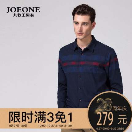 【九牧王旗舰店】男士秋季长袖休闲衬衫,【聚划算279元】券后【179元】包邮,旗舰店品质保证,纯棉,手感柔软,吸湿透气,考究剪裁,上身更显精神利落!【赠运费险】