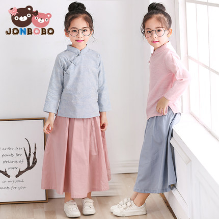 天猫jonbobo旗舰店45元,可领20元券,实付25元包邮。2款可选,身高范围80-160cm。立领盘扣上衣加长裙,复古风,棉麻面料,亲肤舒适,透气吸汗,款式甜美大方,非常适合小公举~