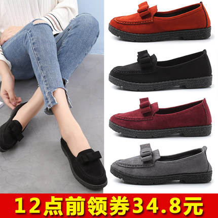 中情鸟女士休闲豆豆鞋 ,布帮面材质+柔软舒适布内里,透气不捂脚,橡胶鞋底,防滑耐磨,外观简洁大方,售价59.8元,使用30元优惠券,实付29.8元包邮。