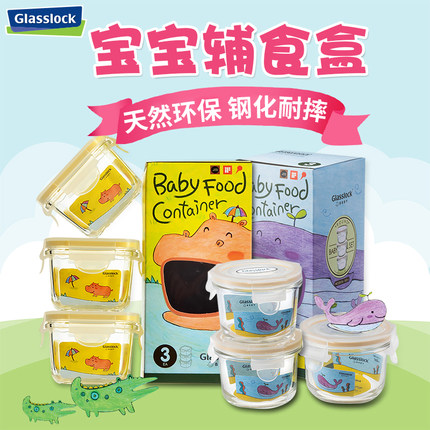 【Glasslock 耐摔 锁鲜 婴儿辅食盒 3个 原装进口 66元包邮 送硅胶勺 同款京东86元】
