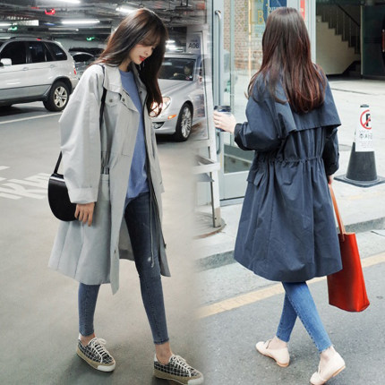 新款外套春秋季chic百搭收腰风衣,气质外套纯色系带显瘦大翻领中长款风衣,韩版修身中长款风衣,修身百搭,极简舒适,对经典的完美演绎!秋冬必备