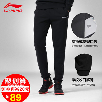 【李宁 男士秋冬季新款收口小脚休闲运动裤 劵后89元包邮】