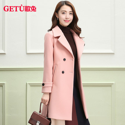 【歌兔 OL风格素色修身长款呢大衣 券后129元包邮】