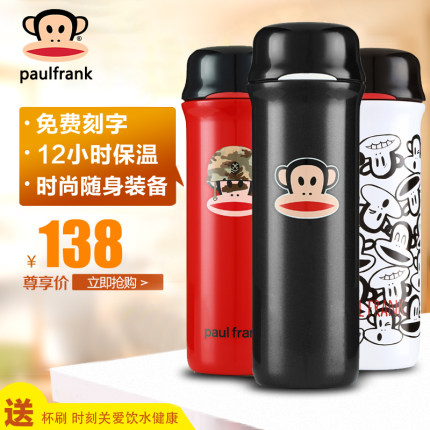 【Paul Frank 大嘴猴 便携不锈钢保温杯480ml 多色 券后68元包邮(138-80)】