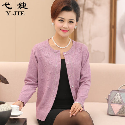 秋季新款妈妈装纯色镶钻针织开衫,精选优质面料,舒适领型设计,亲肤舒适,柔软透气,遮肚显瘦,给妈妈最好的礼物。优雅淑女风格,不经意走进你的心灵!