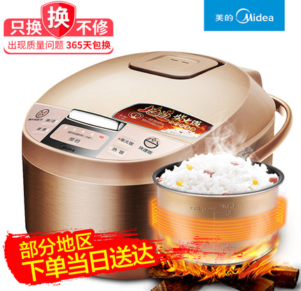 Midea美的WRD5031A电饭煲5L采用了2.0mm合金黄晶蜂窝内胆,耐磨,不粘,三维立体加热,米饭口感更佳,具有一键柴火饭功能,口感更类似于柴火烧出来的美妙味道。包括标准煮,超快煮,精华煮,稀饭,粥/汤,热饭,蒸煮,杂粮八大烹饪功能,24小时预约定时,保温长达16小时,随时可吃到热饭,上置式一键通按键设计,可拆洗盖板。