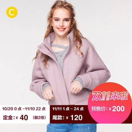 这款 Cache Cache 女士羊毛短款毛呢外套,采用 羊毛51.3%和聚酯纤维48.7%混纺面料,上身柔软舒适,现在支付定金¥40可抵¥80,双11当天支付尾款¥120,最后实付¥160包邮到手好价。